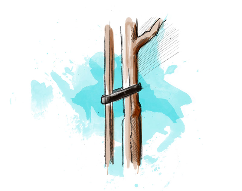 5. Installer un piquet en châtaignier de 2m50 avec des attaches afin de maintenir le plant bien droit pendant les premières années de sa croissance (voir le matériel dans la partie catalogue comptoir, chapitre bois).